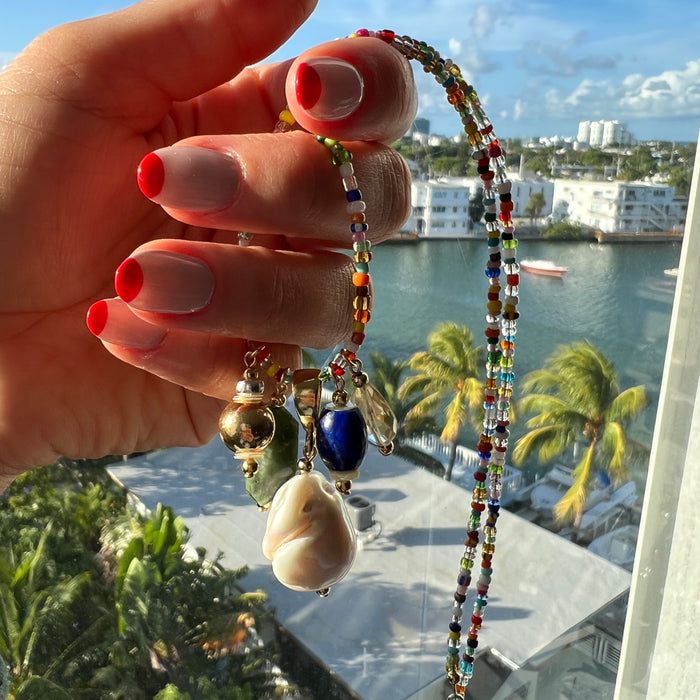 Multi charm stone Maxi Necklace, this piece is the queen of COOLNESS and it can be worn solo or layered with other beautiful necklaces.